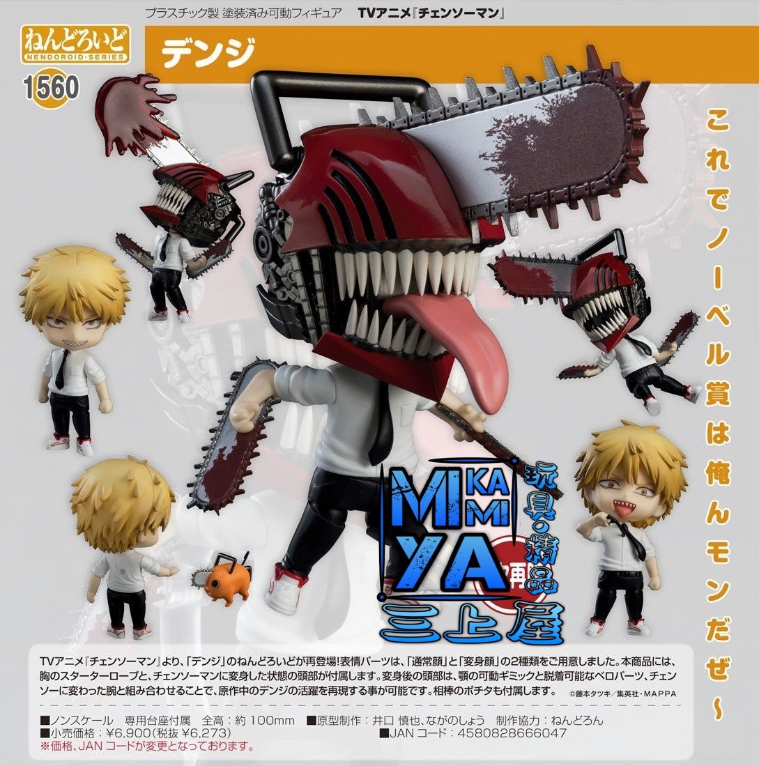 品牌 : Good Smile Company 商品名稱 : 黏土人 1560 淀治 / 電次 日語原文 : ねんどろいど デンジ - チェンソーマン 素材 : ABS・PVC 塗裝完成品 作品 : 鏈鋸人 價格 : HKD$318 [訂金 : HKD$100] 予約截訂日 : 21/11/2025 予定發售期 : 2026年2月予定 #4580828666047 這樣諾貝爾獎就是我的了~!! 出自電視動畫《鏈鋸人》,主角「淀治」的黏土人再次登場!替換用表情零件有「普通臉」與「變身臉」兩種。本商品附有可重現變身畫面的胸部啟動拉繩,以及變身為鏈鋸人狀態的頭部。變身後的頭部,搭配下巴的可動機關、可自由拆裝的舌頭零件,還有變為鏈鋸的手臂,能重現原作中活耀的淀治。另外附製成可愛模型的搭檔波奇塔,可與淀治一同擺飾賞玩。 ================================ MIKAMIYA三上屋預訂商品條款: 客人預訂將視作接受下列注意事項。 1)圖片為製造商提供資料,有機會與實際商品有些許差異。 2)預訂貨品售價以本店發出的單據上貨品價格為準。 3)本店會使用Whatsapp向訂貨客人發出電子單據及到貨通知,如需使用其他方式請於預訂時主動提出。 4)客人收到取貨通知後請於指定期限內到本店門市取貨,或聯絡本店安排送貨[順豐速運(運費自付)]。 ※如客人有困難未能於取貨期限內到店,請主動向本店聯絡支付尾數及申請延長取貨期限至指定日期。 ※本店可以[順豐速運(運費自付)]方式郵寄到香港/澳門及其他地區,本店怒不承擔運輸過程的風險。 ※香港/澳門以外地區可能會產生海關方面的問題或額外關稅,請收貨方自行處理。 5)本店發出取貨通知提示後會起計取貨期限,如超出取貨期限仍未到店取貨及未有聯絡本店,本店會正式視作客人取消訂單及撻訂處理。 6)客人有義務檢查取貨通知信息,本店恕不承擔因客人逾期取貨所造成的損失。 7)本店會盡量與代理商協調返貨數量再公開預訂商品,如因供應商中止生產或臨時限制出貨數量,本店會安排訂金全額退還。 8)所有"日版"商品沒有售後服務,並不設退換。 9)部份"行版/代理版"發行商會提供有限期售後服務,如出現瑕疵或缺件可向本店職員查詢安排轉介至發行商或總代理,本店不提供直接退貨或換貨。 10)商品有機會出現延遲出貨的情況,發售日及各項資訊以製造商官方網站為準,請留意相關官方公佈。 11)如有出現因錯字或發行商提供錯誤資料導致商品資訊或價格出現異常,本店有機會聯絡客人安排更正/取消錯誤訂單,如未能達成共識,已收取之款項將會全數退還。 ================================