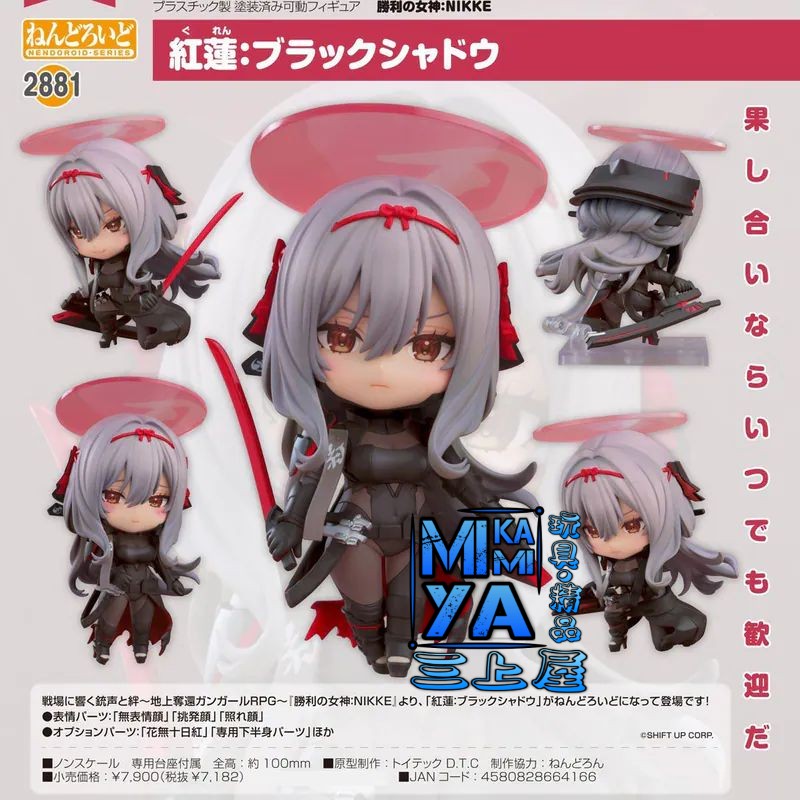 品牌 : Good Smile Company 商品名稱 : 黏土人 2881 紅蓮 : 暗影 日語原文 : ねんどろいど 紅蓮:ブラックシャドウ - 勝利の女神:NIKKE 素材 : ABS・PVC 塗裝完成品 作品 : 勝利女神 : 妮姬 價格 : HKD$358 [訂金 : HKD$100] 予約截訂日 : 21/11/2025 予定發售期 : 2026年4月予定 #4580828664166 若欲一較高下,吾隨時奉陪。 出自戰場響起的槍聲與羈絆~地面奪還槍械少女RPG《勝利女神:妮姬》,「紅蓮:暗影」化身為黏土人登場! ・表情零件:「無表情臉」、「挑釁臉」、「害羞臉」 ・配件:「花無十日紅」、「專用下半身零件」等 ================================ MIKAMIYA三上屋預訂商品條款: 客人預訂將視作接受下列注意事項。 1)圖片為製造商提供資料,有機會與實際商品有些許差異。 2)預訂貨品售價以本店發出的單據上貨品價格為準。 3)本店會使用Whatsapp向訂貨客人發出電子單據及到貨通知,如需使用其他方式請於預訂時主動提出。 4)客人收到取貨通知後請於指定期限內到本店門市取貨,或聯絡本店安排送貨[順豐速運(運費自付)]。 ※如客人有困難未能於取貨期限內到店,請主動向本店聯絡支付尾數及申請延長取貨期限至指定日期。 ※本店可以[順豐速運(運費自付)]方式郵寄到香港/澳門及其他地區,本店怒不承擔運輸過程的風險。 ※香港/澳門以外地區可能會產生海關方面的問題或額外關稅,請收貨方自行處理。 5)本店發出取貨通知提示後會起計取貨期限,如超出取貨期限仍未到店取貨及未有聯絡本店,本店會正式視作客人取消訂單及撻訂處理。 6)客人有義務檢查取貨通知信息,本店恕不承擔因客人逾期取貨所造成的損失。 7)本店會盡量與代理商協調返貨數量再公開預訂商品,如因供應商中止生產或臨時限制出貨數量,本店會安排訂金全額退還。 8)所有"日版"商品沒有售後服務,並不設退換。 9)部份"行版/代理版"發行商會提供有限期售後服務,如出現瑕疵或缺件可向本店職員查詢安排轉介至發行商或總代理,本店不提供直接退貨或換貨。 10)商品有機會出現延遲出貨的情況,發售日及各項資訊以製造商官方網站為準,請留意相關官方公佈。 11)如有出現因錯字或發行商提供錯誤資料導致商品資訊或價格出現異常,本店有機會聯絡客人安排更正/取消錯誤訂單,如未能達成共識,已收取之款項將會全數退還。 ================================