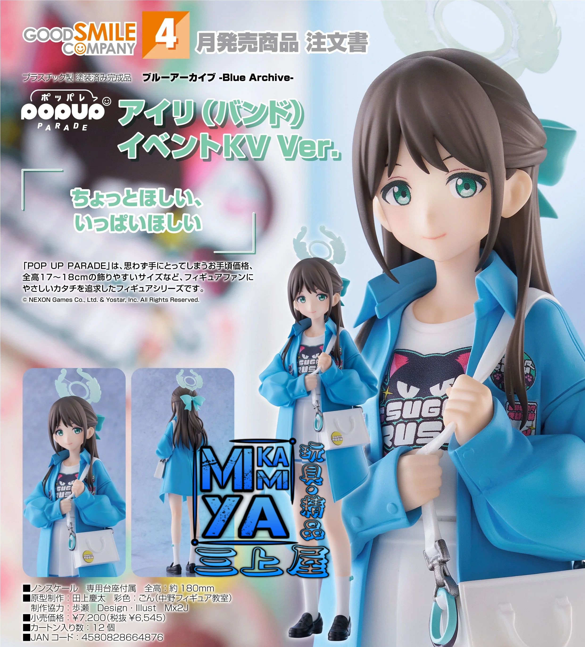 品牌 : Good Smile Company 商品名稱 : POP UP PARADE 栗村愛莉 ( 樂團 ) 活動主視覺Ver. 日語原文 : POP UP PARADE アイリ(バンド) イベントKV Ver. 比例 : non 素材 : ABS・PVC 塗裝完成品 作品 : 蔚藍檔案-Blue Archive- 價格 : HKD$288 [訂金 : HKD$100] 予約截訂日 : 21/11/2025 予定發售期 : 2026年4月予定 #4580828664876 ================================ MIKAMIYA三上屋預訂商品條款: 客人預訂將視作接受下列注意事項。 1)圖片為製造商提供資料,有機會與實際商品有些許差異。 2)預訂貨品售價以本店發出的單據上貨品價格為準。 3)本店會使用Whatsapp向訂貨客人發出電子單據及到貨通知,如需使用其他方式請於預訂時主動提出。 4)客人收到取貨通知後請於指定期限內到本店門市取貨,或聯絡本店安排送貨[順豐速運(運費自付)]。 ※如客人有困難未能於取貨期限內到店,請主動向本店聯絡支付尾數及申請延長取貨期限至指定日期。 ※本店可以[順豐速運(運費自付)]方式郵寄到香港/澳門及其他地區,本店怒不承擔運輸過程的風險。 ※香港/澳門以外地區可能會產生海關方面的問題或額外關稅,請收貨方自行處理。 5)本店發出取貨通知提示後會起計取貨期限,如超出取貨期限仍未到店取貨及未有聯絡本店,本店會正式視作客人取消訂單及撻訂處理。 6)客人有義務檢查取貨通知信息,本店恕不承擔因客人逾期取貨所造成的損失。 7)本店會盡量與代理商協調返貨數量再公開預訂商品,如因供應商中止生產或臨時限制出貨數量,本店會安排訂金全額退還。 8)所有"日版"商品沒有售後服務,並不設退換。 9)部份"行版/代理版"發行商會提供有限期售後服務,如出現瑕疵或缺件可向本店職員查詢安排轉介至發行商或總代理,本店不提供直接退貨或換貨。 10)商品有機會出現延遲出貨的情況,發售日及各項資訊以製造商官方網站為準,請留意相關官方公佈。 11)如有出現因錯字或發行商提供錯誤資料導致商品資訊或價格出現異常,本店有機會聯絡客人安排更正/取消錯誤訂單,如未能達成共識,已收取之款項將會全數退還。 ================================