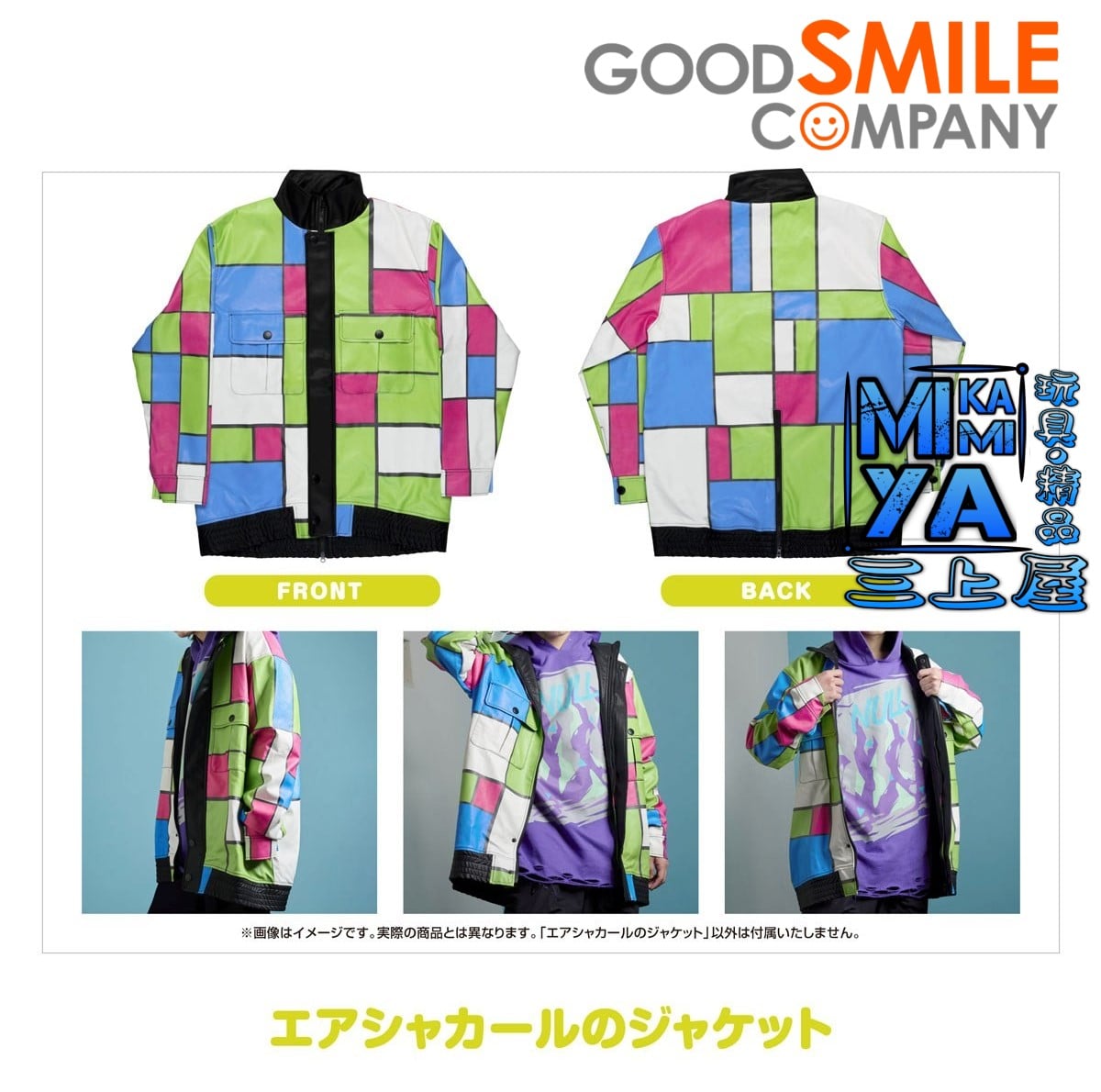 遊戲《賽馬娘Pretty Derby》的不受拘束的數據至上主義者。頭腦和個性都很俐落,不追求隨便的勝利,只追求邏輯帶來的絕對勝利的賽馬娘「空中神宮」,完全重現其便服夾克!符合數據至上主義者的空中神宮形象,人造皮革夾克採用平行線和垂直線交織的格紋圖案,印有現代藝術風格的滿版設計!採用不分性別皆適穿的寬鬆設計!