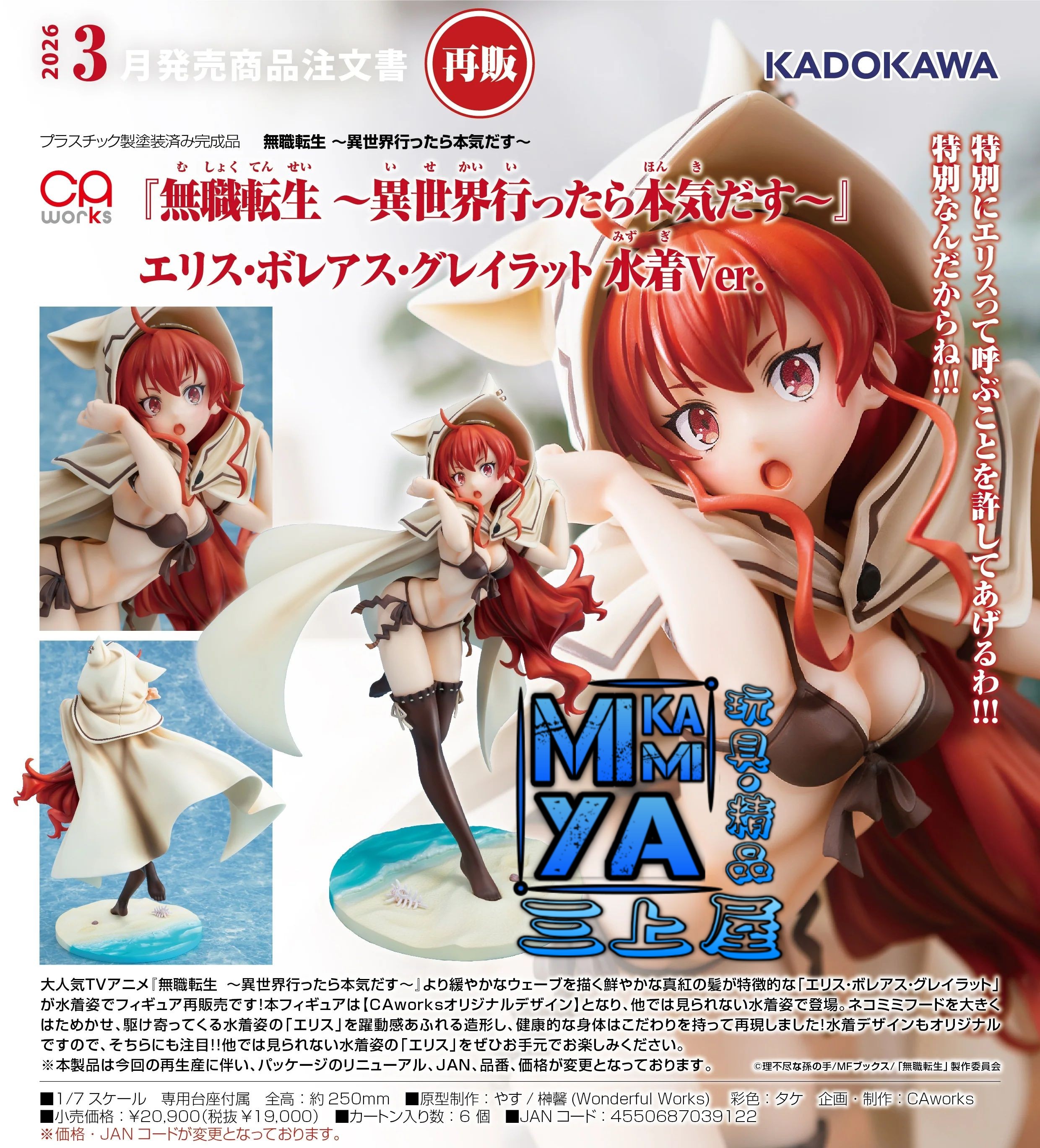 【預訂日期至31/10/25】 KADOKAWA CAworks 1/7 艾莉絲·伯雷亞斯·格雷拉特 泳裝Ver. : 無職轉生~到了異世界就拿出真本事~ / GSC CAworks 1-7 Eris Boreas Greyrat: Swimsuit Ver. : Mushoku Tensei: Jobless Reincarnation 🌸[訂單確認後,本店會於一週內發出電子預購單據,屆時請確認WhatsApp對話查收。"如需到店提取紙質單據或使用其他通訊APP可於備註告知"]