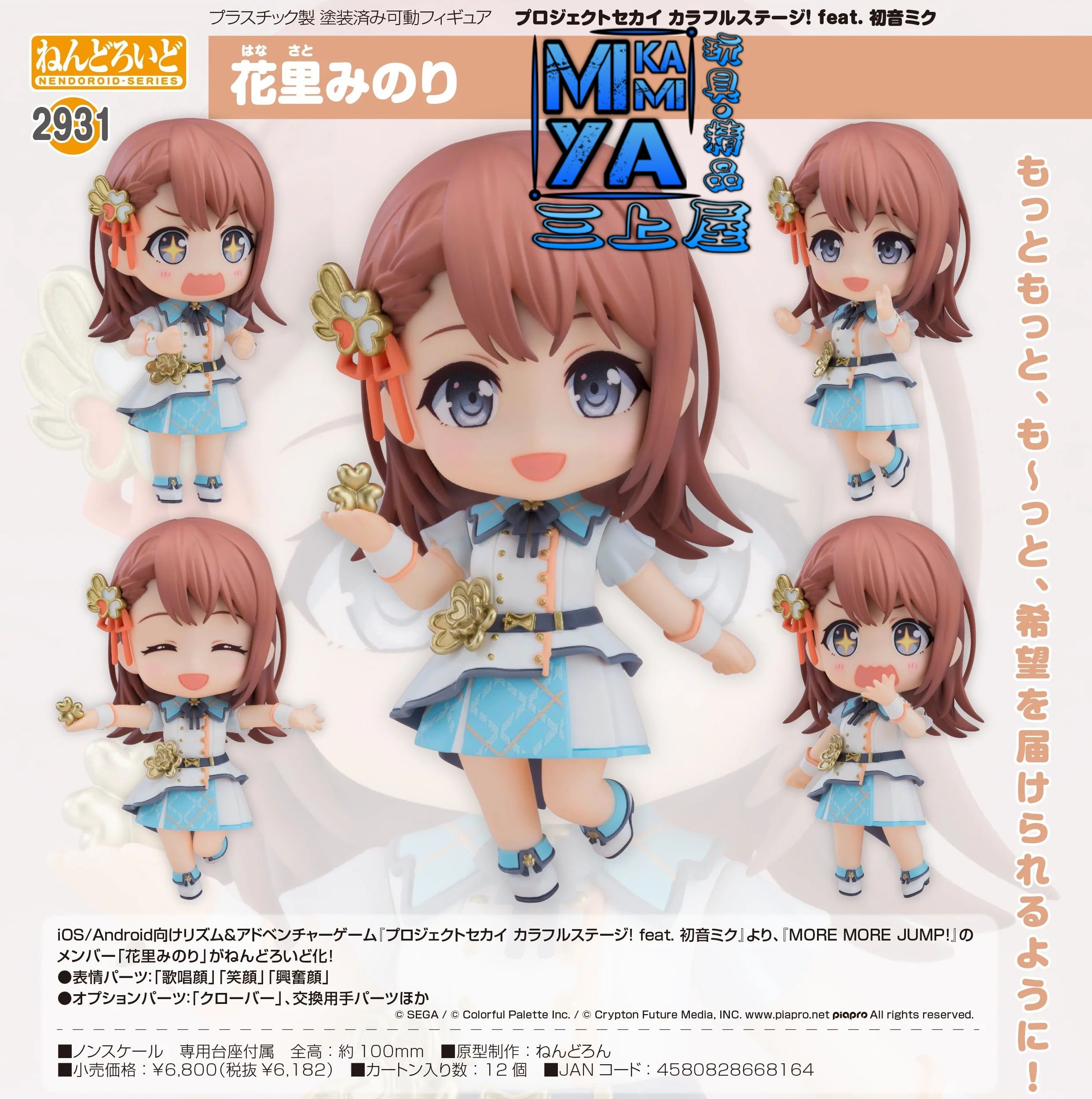 出自iOS/Android節奏&冒險遊戲《世界計畫 繽紛舞台! feat. 初音未來》,「MORE MORE JUMP!」的成員「花里實乃理」化身為黏土人!