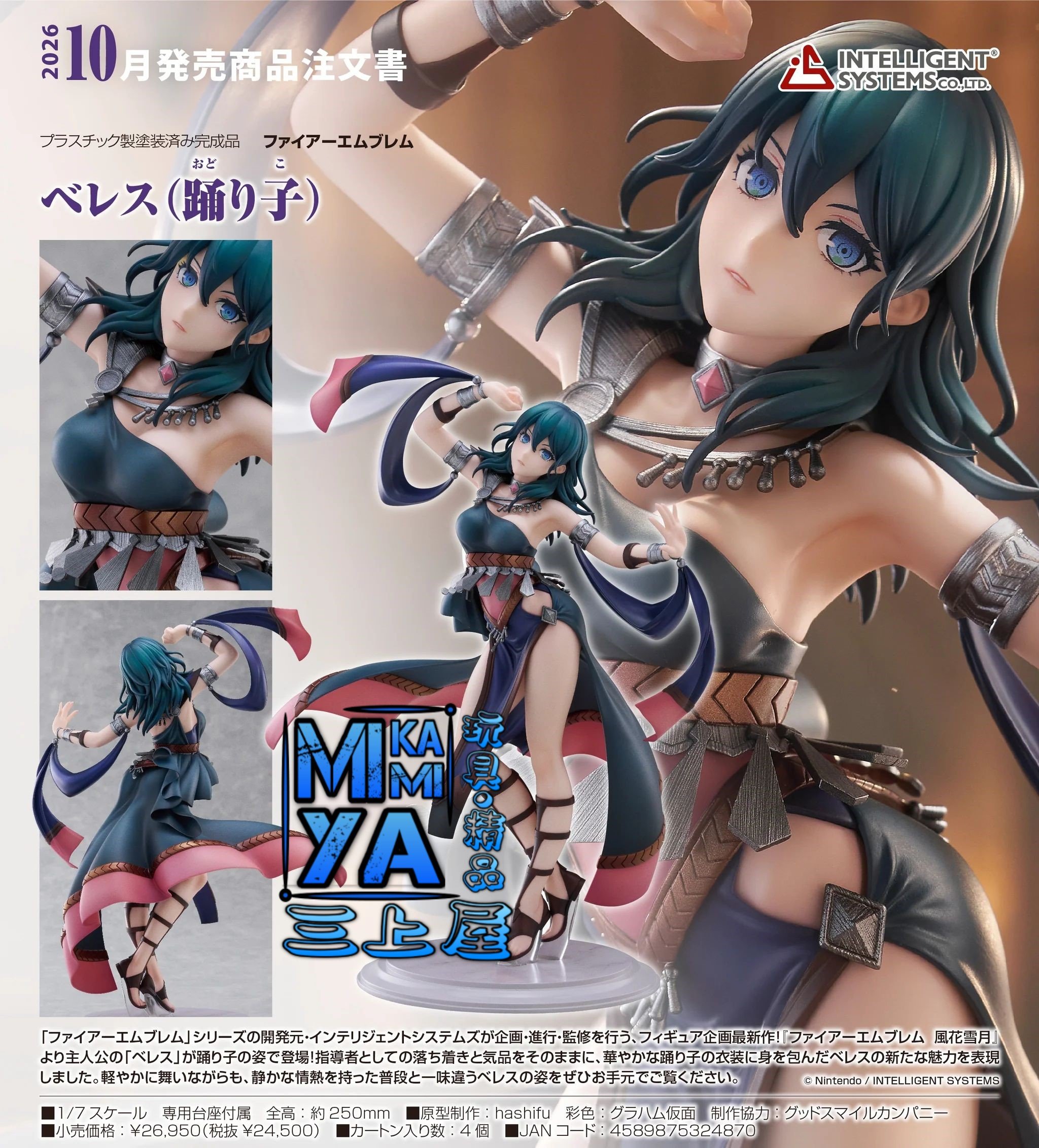 品牌 : INTELLIGENT SYSTEMS 商品名稱 : 貝雷絲 ( 舞孃 ) 日語原文 : ベレス(踊り子) - ファイアーエムブレム 比例 : 1/7 素材 : ABS・PVC 塗裝完成品 作品 : 火焰之紋章 / 聖火降魔錄 風花雪月 價格 : HKD$1338 [訂金 : HKD$400] 予約截訂日 : 9/1/2026 予定發售期 : 2026年10月予定 #4589875324870 「Fire Emblem」系列的開發商——INTELLIGENT SYSTEMS所企劃、製作、監製的模型企劃最新作!出自《Fire Emblem 風花雪月》,主角「貝雷絲」以舞孃的姿態登場!保留了作為老師的冷靜與氣質,穿上華麗舞孃服裝的貝雷絲展現出全新的魅力。輕盈舞動中蘊含著靜謐熱情,表現出與平常截然不同的貝雷斯姿態。敬請帶回家親自鑑賞吧。 ================================ MIKAMIYA三上屋預訂商品條款: 客人預訂將視作接受下列注意事項。 1)圖片為製造商提供資料,有機會與實際商品有些許差異。 2)預訂貨品售價以本店發出的單據上貨品價格為準。 3)本店會使用Whatsapp向訂貨客人發出電子單據及到貨通知,如需使用其他方式請於預訂時主動提出。 4)客人收到取貨通知後請於指定期限內到本店門市取貨,或聯絡本店安排送貨[順豐速運(運費自付)]。 ※如客人有困難未能於取貨期限內到店,請主動向本店聯絡支付尾數及申請延長取貨期限至指定日期。 ※本店可以[順豐速運(運費自付)]方式郵寄到香港/澳門及其他地區,本店怒不承擔運輸過程的風險。 ※香港/澳門以外地區可能會產生海關方面的問題或額外關稅,請收貨方自行處理。 5)本店發出取貨通知提示後會起計取貨期限,如超出取貨期限仍未到店取貨及未有聯絡本店,本店會正式視作客人取消訂單及撻訂處理。 6)客人有義務檢查取貨通知信息,本店恕不承擔因客人逾期取貨所造成的損失。 7)本店會盡量與代理商協調返貨數量再公開預訂商品,如因供應商中止生產或臨時限制出貨數量,本店會安排訂金全額退還。 8)所有"日版"商品沒有售後服務,並不設退換。 9)部份"行版/代理版"發行商會提供有限期售後服務,如出現瑕疵或缺件可向本店職員查詢安排轉介至發行商或總代理,本店不提供直接退貨或換貨。 10)商品有機會出現延遲出貨的情況,發售日及各項資訊以製造商官方網站為準,請留意相關官方公佈。 11)如有出現因錯字或發行商提供錯誤資料導致商品資訊或價格出現異常,本店有機會聯絡客人安排更正/取消錯誤訂單,如未能達成共識,已收取之款項將會全數退還。 ================================