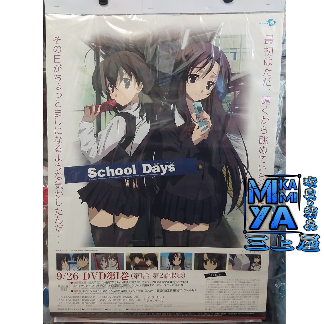 商品名稱 : B2海報收藏 宣傳海報 西園寺世界 & 桂言葉 - DVD School Days 動畫版 第1卷