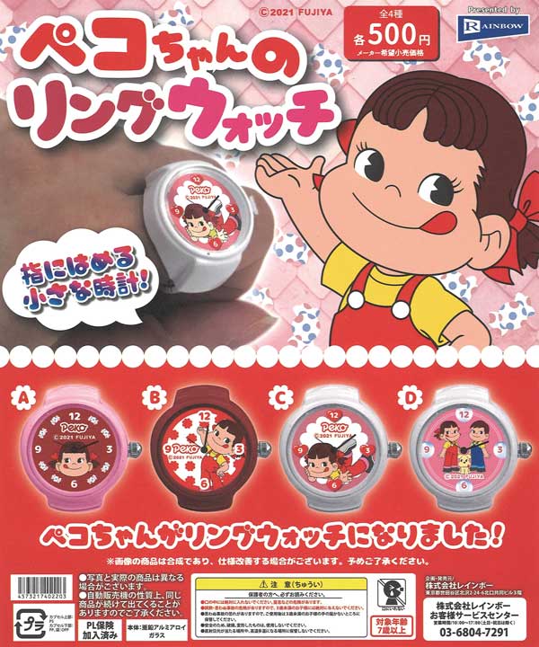 🧧新春優惠🐎 🇯🇵日版 RAINBOW FUJIYA PEKO 不二家 牛奶妹 介指手錶 扭蛋 1套4款